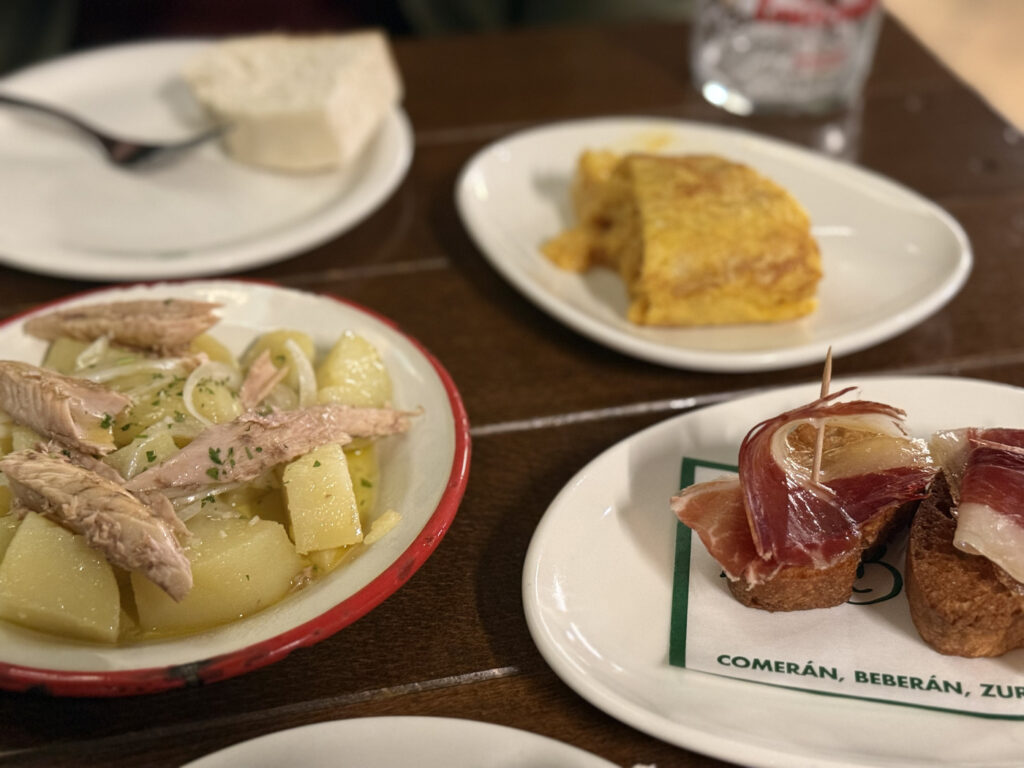 Este es otro de los bares de tapas más conocidos y frecuentados de Sevilla, tanto por la gente local como por turistas. Todo un clásico, con una buena carta de tapas a buen precio. Tiene mesas en exterior y en interior. En la foto, montadito de pringá, serranito y tortilla al whisky.