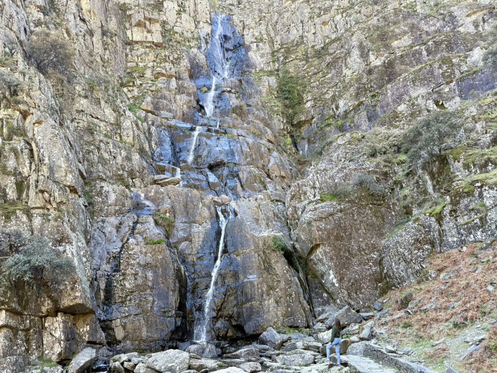 Precisamente en El Gasco puedes hacer una sencilla ruta para llegar a una de las cascadas más impresionantes que ver en Las Hurdes: el Chorro de la Mancera. Un impresionante espectáculo de agua cayendo desde más de 100 metros de altura. El sendero está bien señalizado y discurre entre montañas, bancales y vegetación típica hurdana – incluyendo muchos cerezos en flor en la época de floración-. Hay un pequeño aparcamiento en el pueblo, desde allí puedes bajar a mano izquierda y seguir el curso del río de Malvellido.