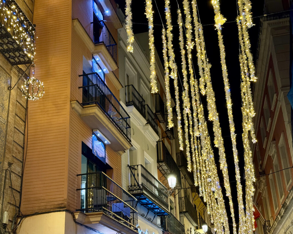 Aunque hay cientos de calles iluminadas en Sevilla por Navidad, Tetuán, Sierpes, Velázquez, Cuna o Reyes Católicos son algunas de las que no te puedes perder – suelen renovar el alumbrado cada año – aunque paseando por el centro seguro que encontrarás muchas más.